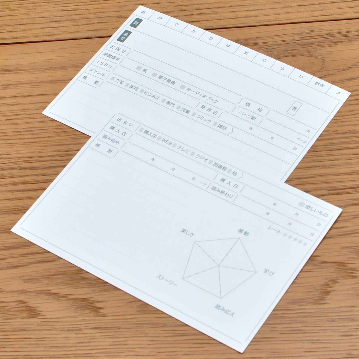 はがきサイズ(A6)の読書カードを作ってみました!25枚入りです。1作品につき1枚を使って、気になる本のチェック→購入→読み終わり→読書感想までをサポートできるカードを目指して制作しています。