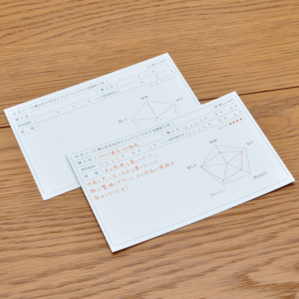 読書感想ということ、子供のころの学びから「小説のような文字で構成されたものじゃないと…」みたいに構えてしまいがちですが、レシピ本やマンガ、なんなら新聞だって読んだものであるなら読書カードとして記録しておくのも全然アリだと思います。印象に残ったことを書き綴っていけば、自分専用のデータベースとして蓄積できて、見返すことで思い出すことができるのは(忘れがちな僕にとって)大きな財産になるはず!