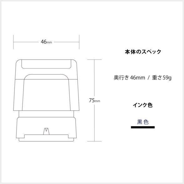 - 本体サイズ(約):高さ75 × 横60 × 奥行55mm / 重さ: 81g / 浸透印タイプ:(1)ひと押しで消費するインク量にもよりますが、おおよそ3000回以上はお使い頂けます。 (2)専用インクで補充すれば計30000回程度は綺麗に押すことができます。