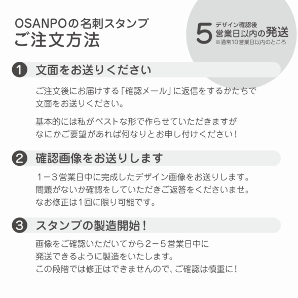住所印に印字する文面は、ご注文後にお届けします「確認メール」に返信をするかたちでお送りください。