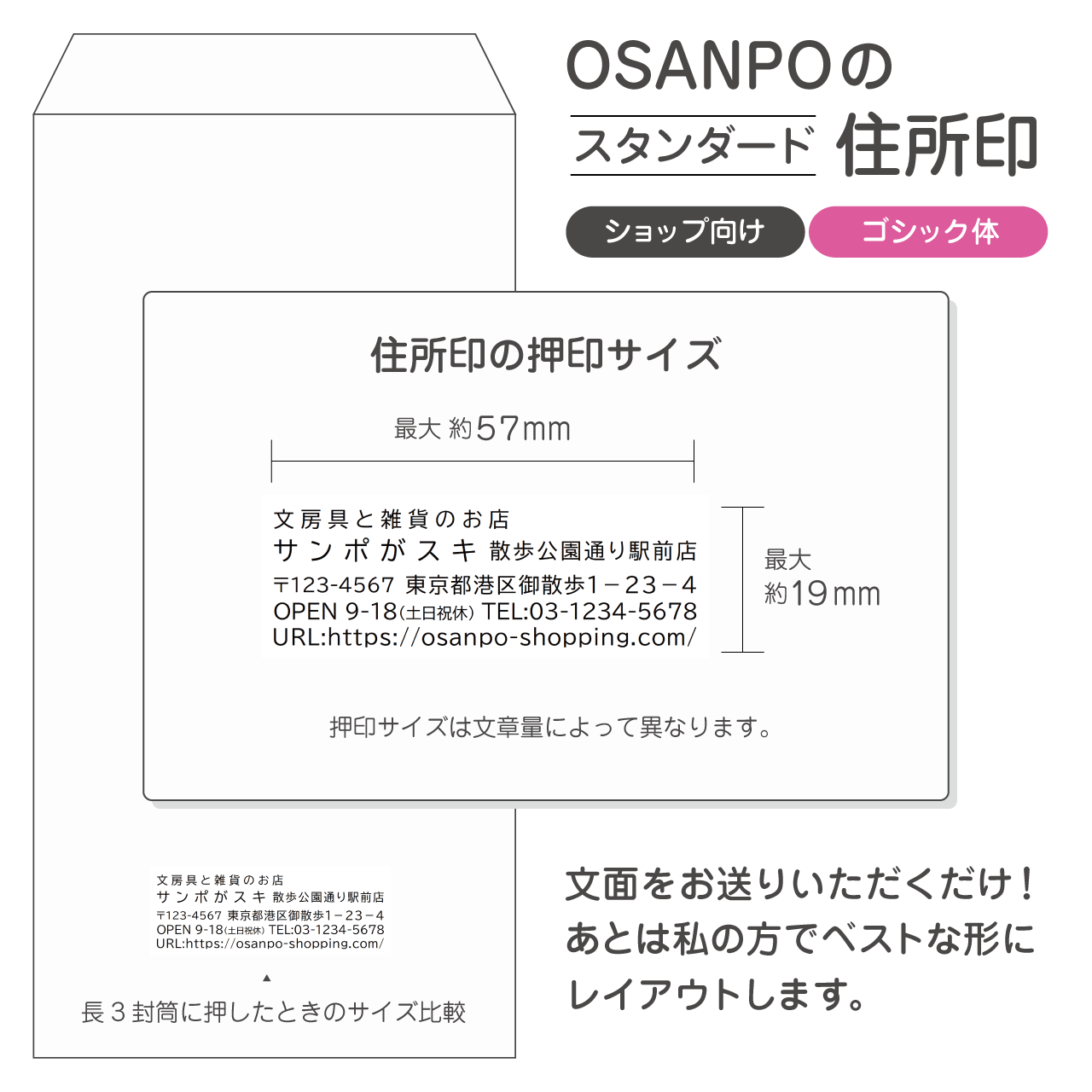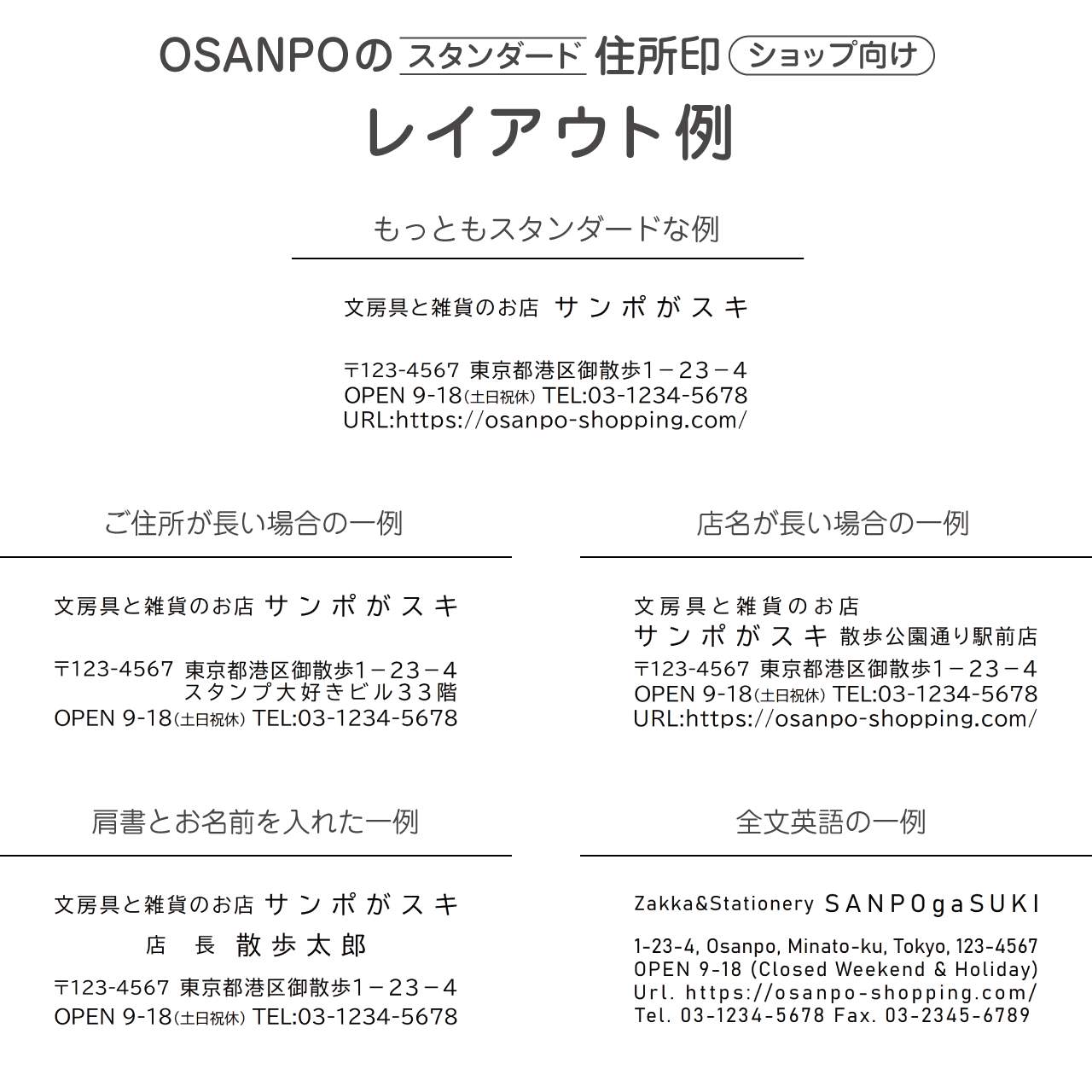 こちらは主にショップさま向けにレイアウトした住所印です。