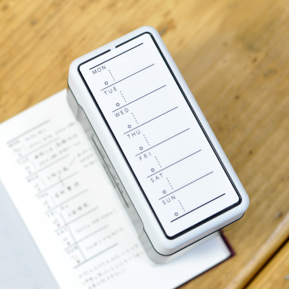 ポン!とひと押しで、1週間の予定を書く欄を作ることができるスタンプでございます。今までも丸タイプにてリリースしておりましたが、こちらはホリゾンタルな縦並びタイプになります!