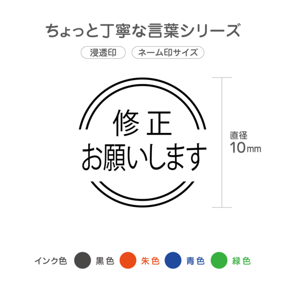 修正お願いします ちょっと丁寧な言葉のスタンプ 直径10mm ネーム印サイズ